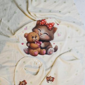 SET lagani pamučni muslin prekrivač i jastučić Medvjedica 722