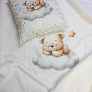 Set Soft Dvoslojna DEKICA i jastučić plavi medo spava na oblaku