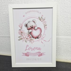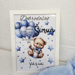 Personalizirani jastučić sa podacima rođenja 35x35cm medvjedici pla 350