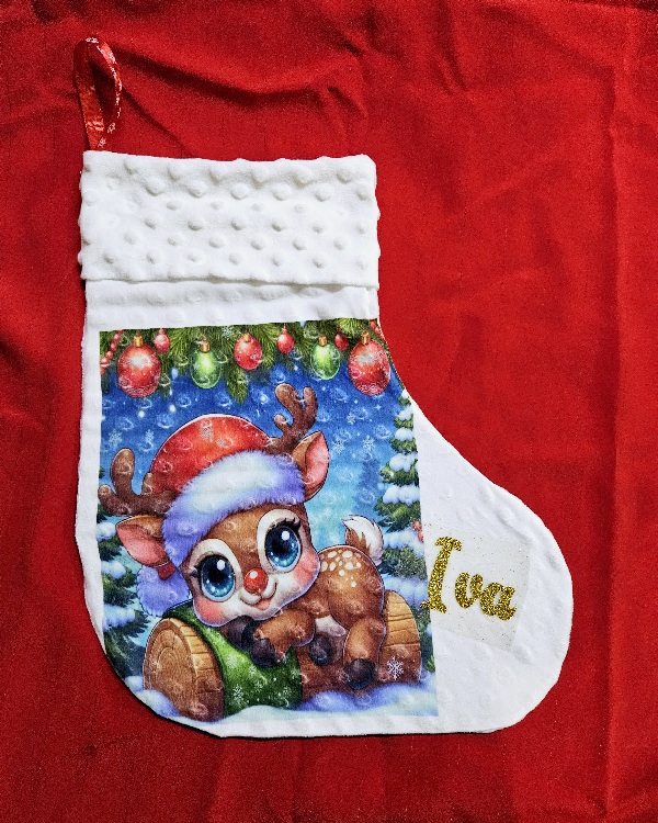 Tisak Sobića + tisak imena na gorenjem dijelu čizmice , u srebrnoj ili zlatnoj kombinaciji sa Božićnom vrstom slova 🙂 .
