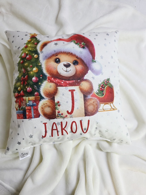 Poseban jastučić sa blagdanskim motivom  velikog početnog slova imena te ispisom cijelog imena djeteta ❣️
