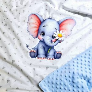 Dvoslojna dekica izrađena od pamučnog platna  sa tiskom životinjice + sa toplije strane jednobojne , nalazi se  minky tkanina koja je topla, nježna i mekana , savršena za hladnije dane kada bebicu treba ušuškati u toplo.
