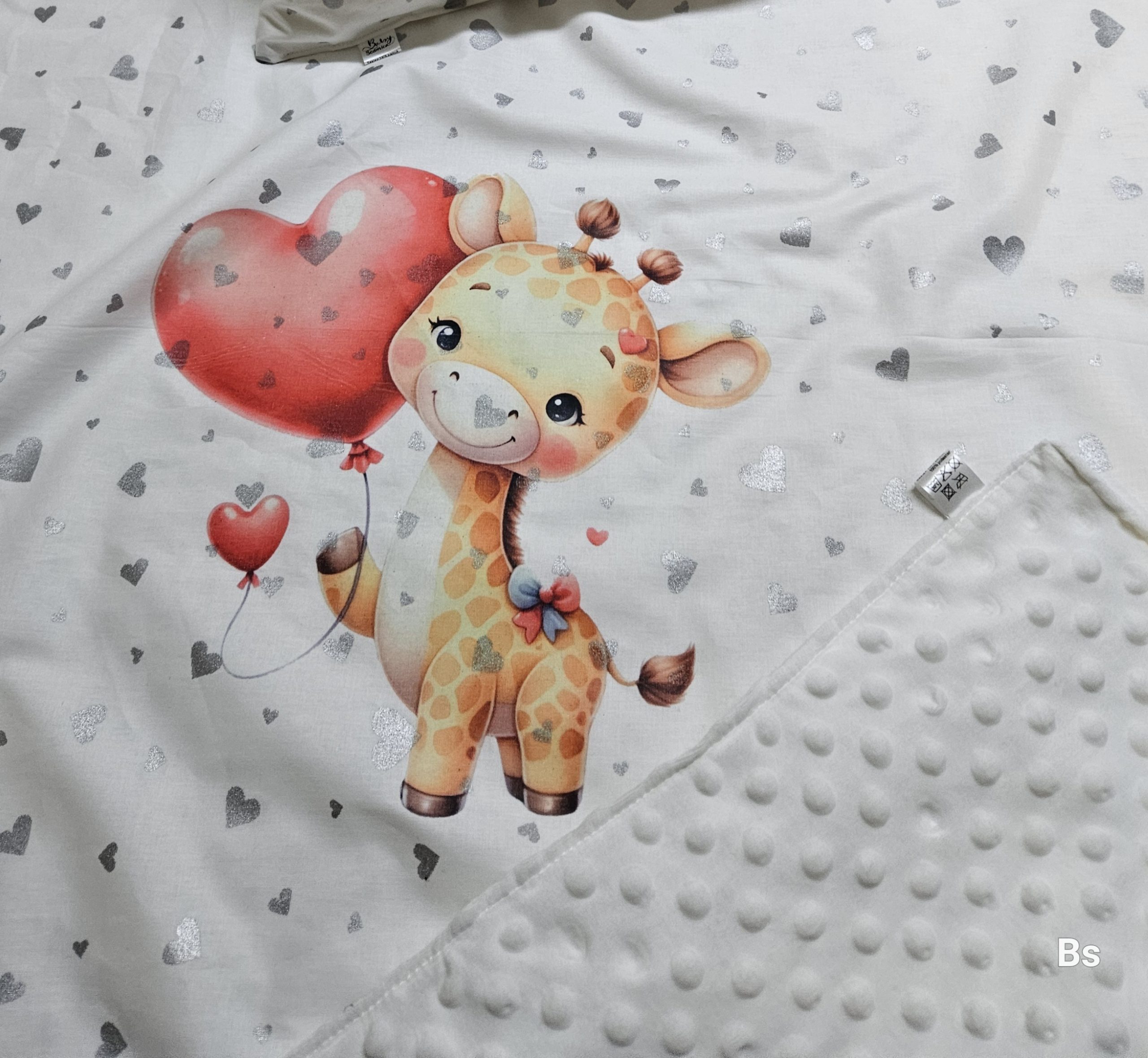 Dekica DVOSLOJNA minky+pamučno platno SREBRNA SRCA Žirafica