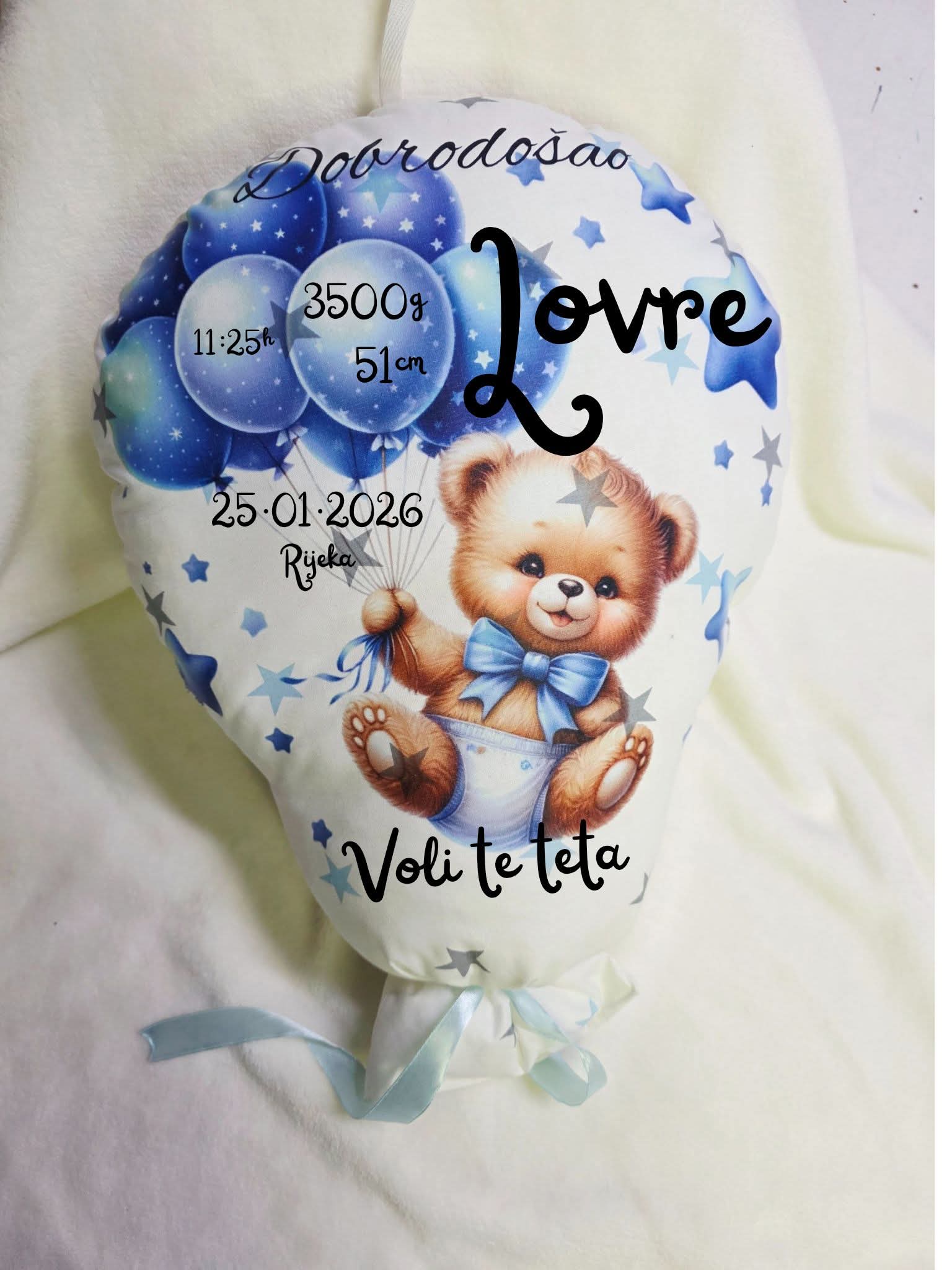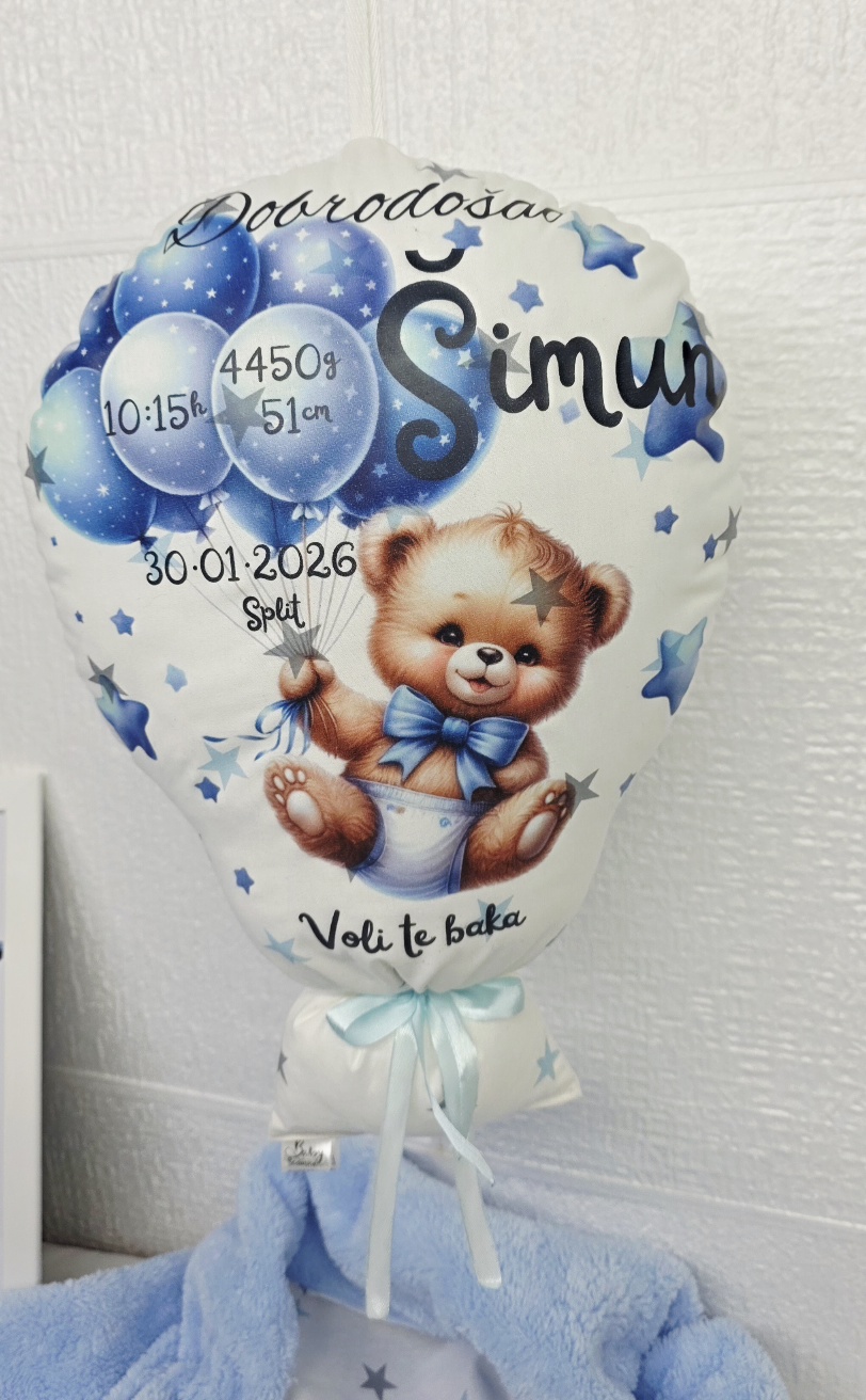 Jastučić Balon personalizirani rođenje Medo plavi 315