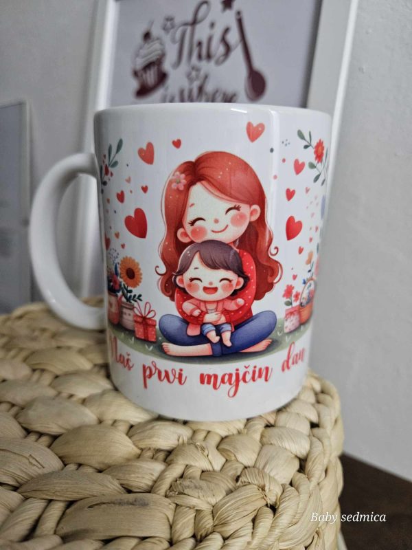 Keramičke šalice sa tiskom Cvjetića , i natpisom Mama , strpljiva, snažna, brižna , podrška ..Posebna i jedinstvena uspomena. Tisak jednostrani.