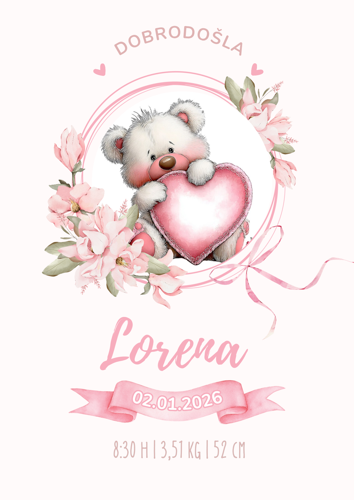 Okvir bijeli, Medo i srce roza