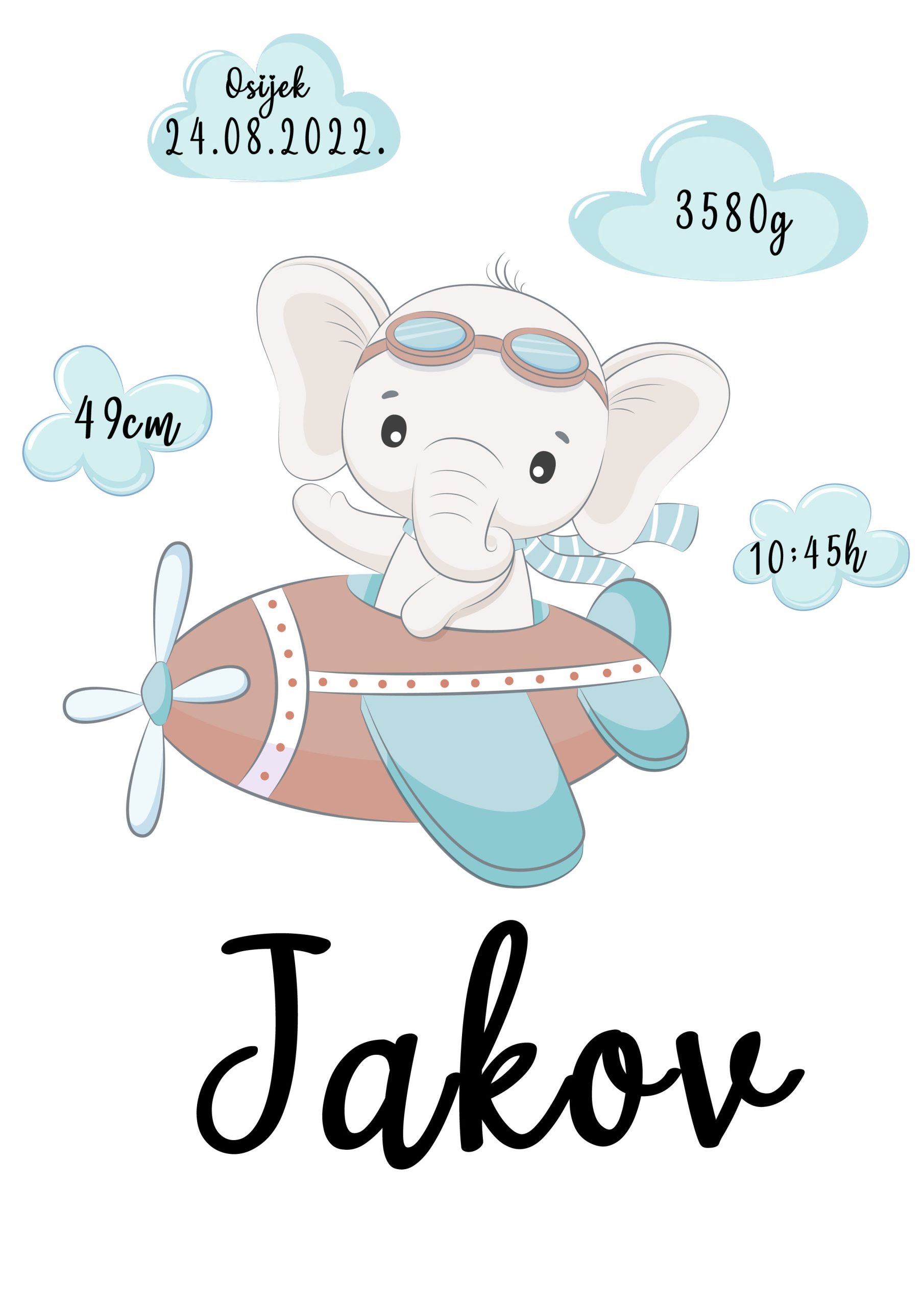 Personalizirana sličica sa preslatkim motivom slonića i balona sa zvjezdicama. Može biti i za dječake i za djevojčice.