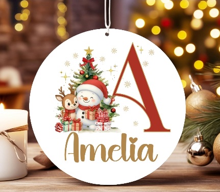 Okrugli ukrasić za bor sa početnim slovom imena + ime