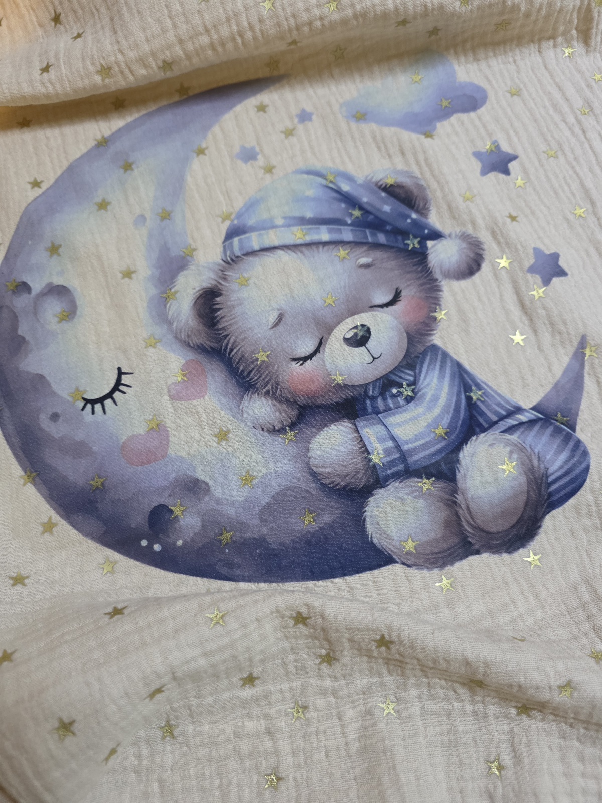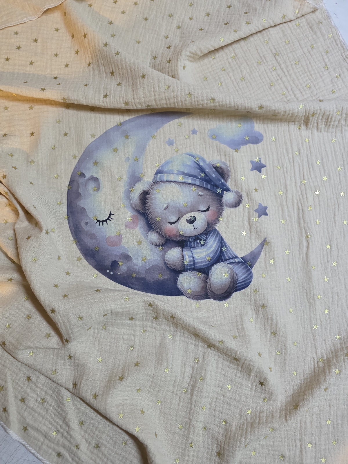 prekrivač je izrađen od pamučnog muslin materijala dimenzije 70x100cm ( +/-2cm)