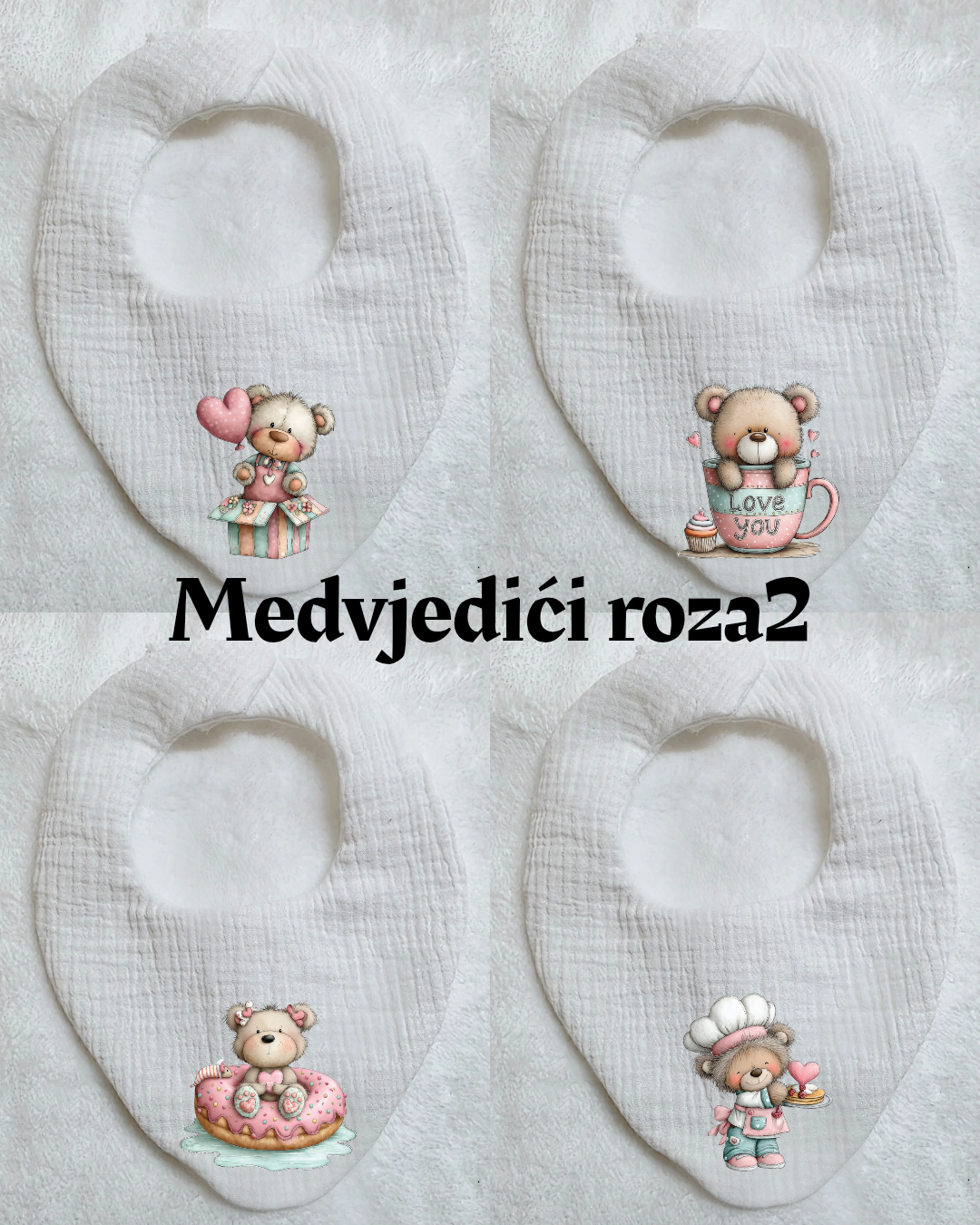 Set Slinčeka 4kom, dvoslojni muslin tisak Medvjedići roza2