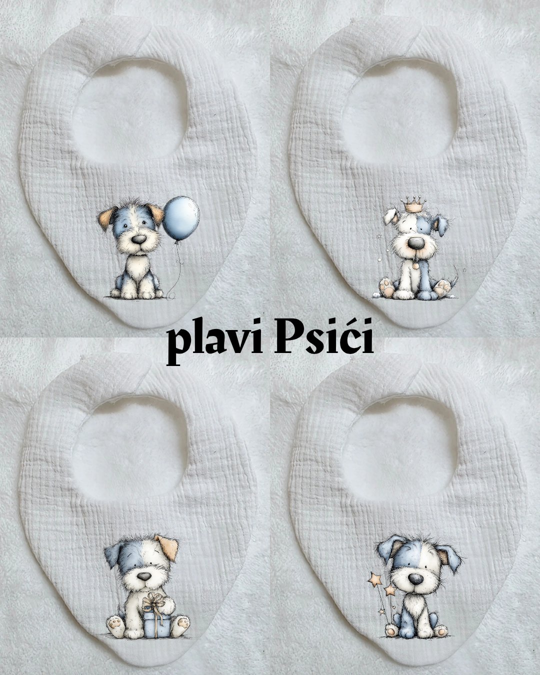 Set Slinčeka 4kom, dvoslojni muslin tisak plavih Psića
