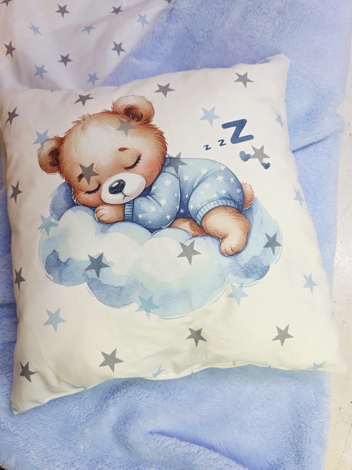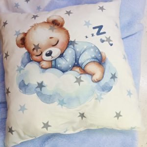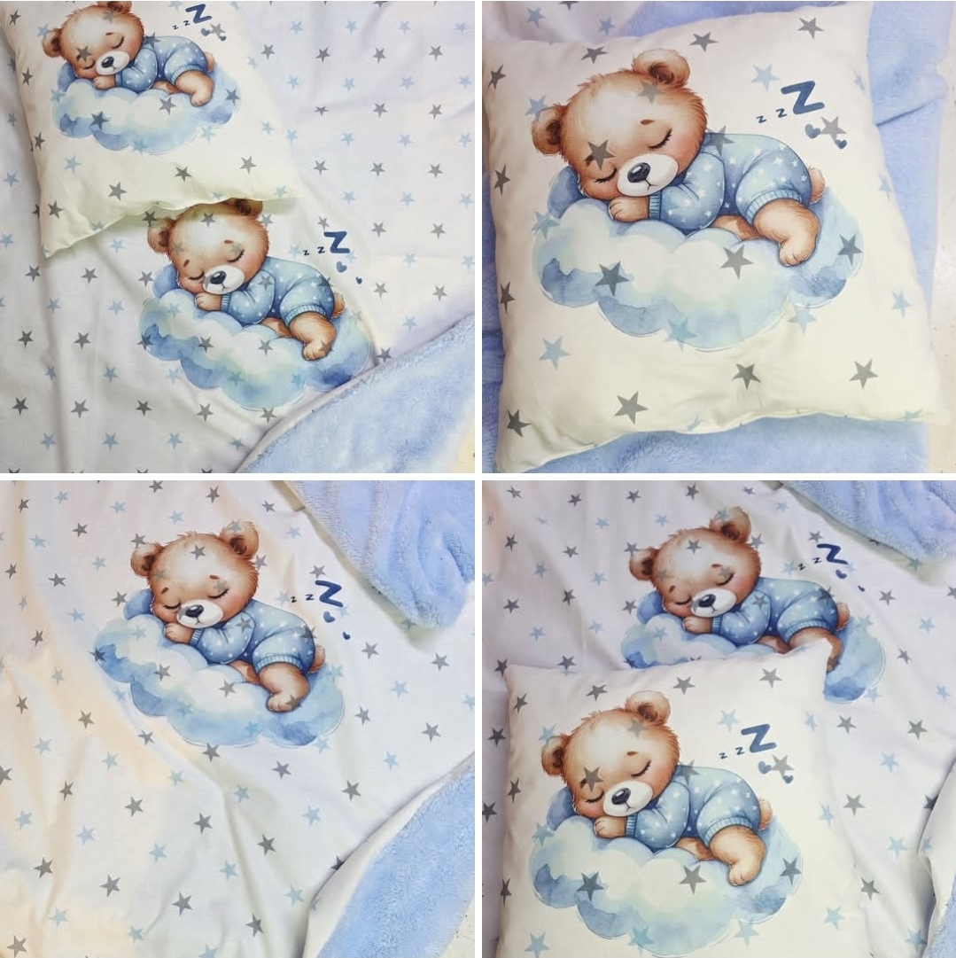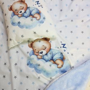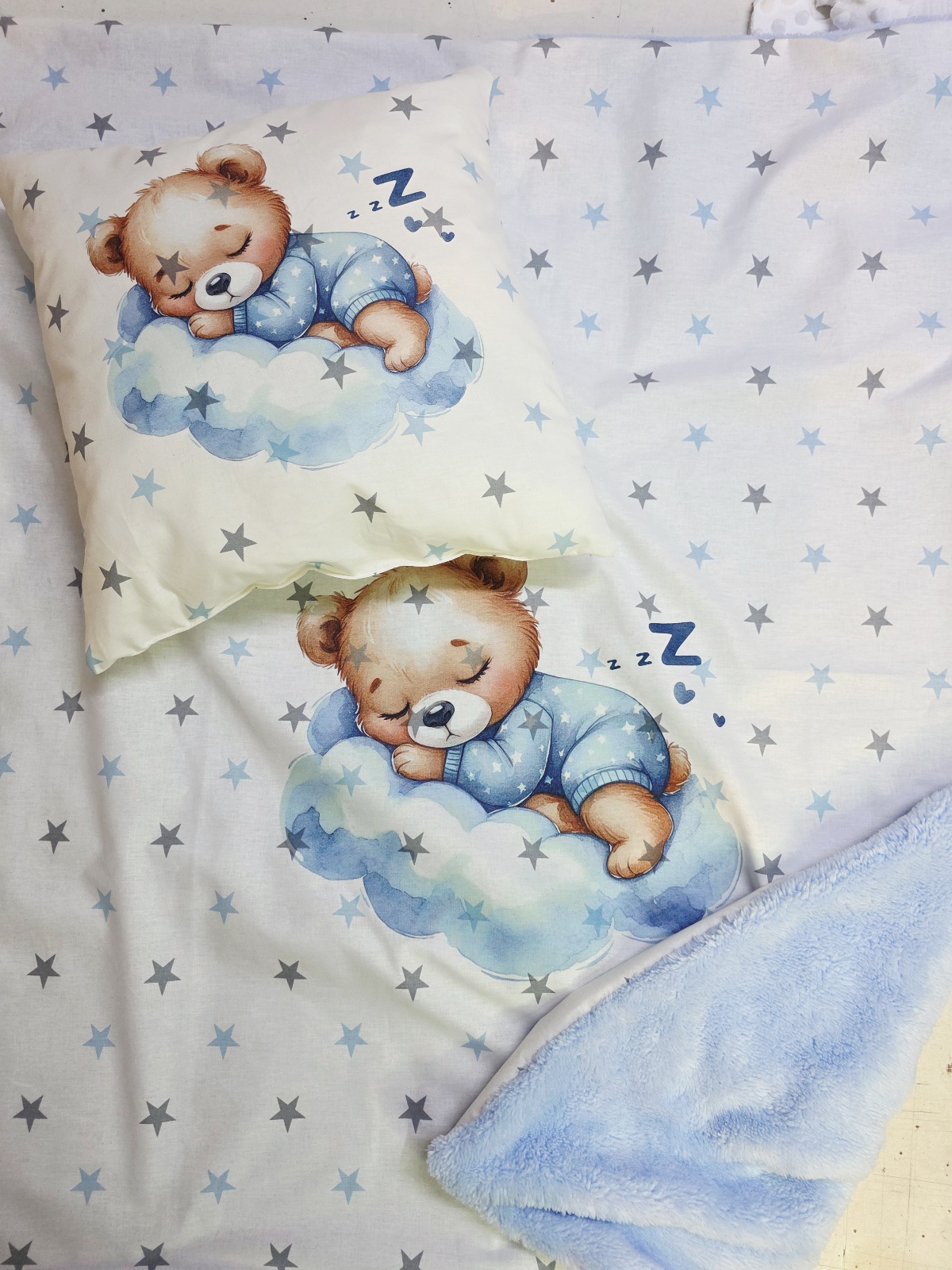 Set Soft Dvoslojna DEKICA i jastučić plavi medo spava na oblaku