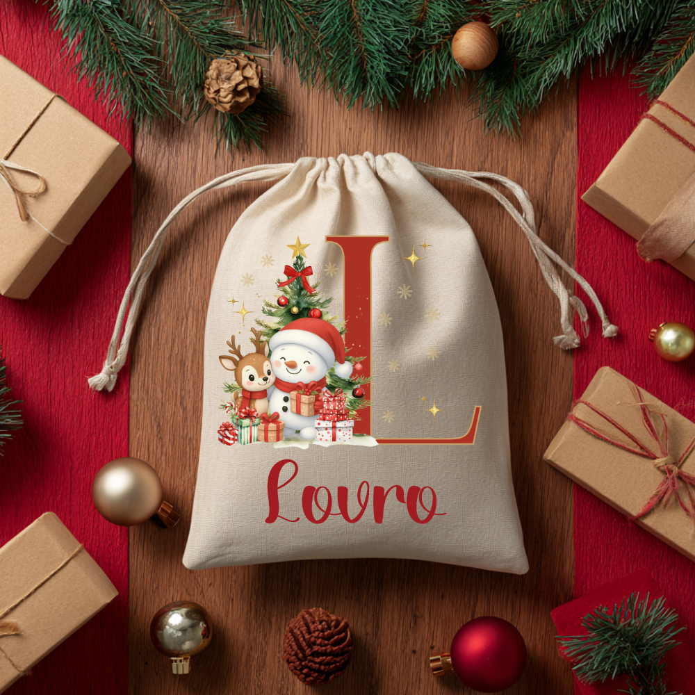Vreća za poklon sa slovom borićem, snješkom i djedicom